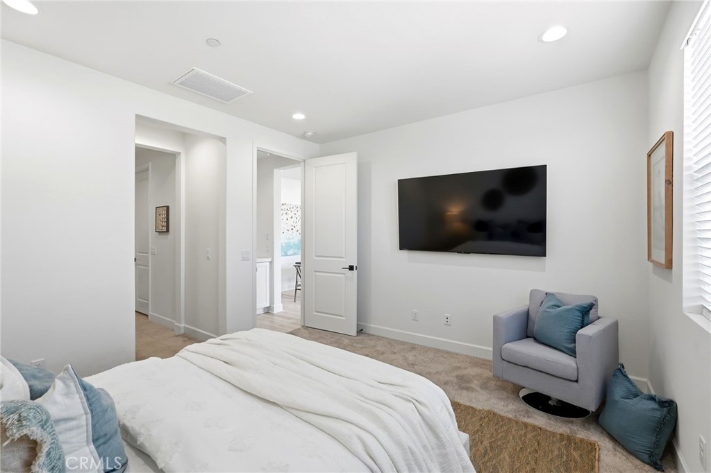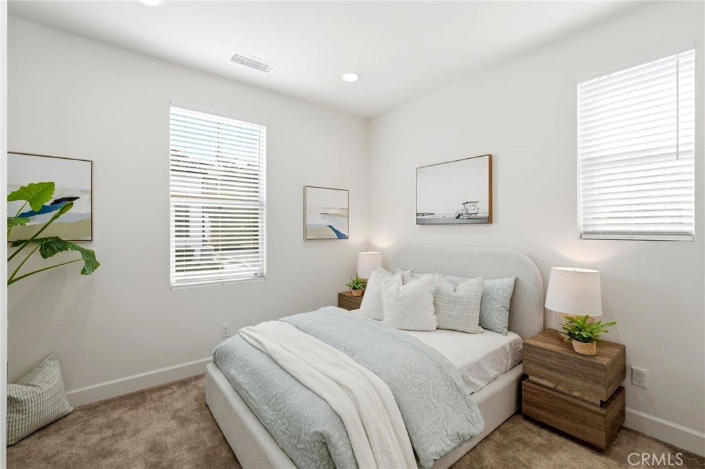 Energy efficiency is thoughtfully incorporated with a whole-house fan that takes advantage of Camarillo's coastal breezes, reducing the need for air conditioning and lowering energy costs. Additional features include an attached two-car garage with a Level 2 EV charger, in-unit washer and dryer, and included TVs and WiFi.