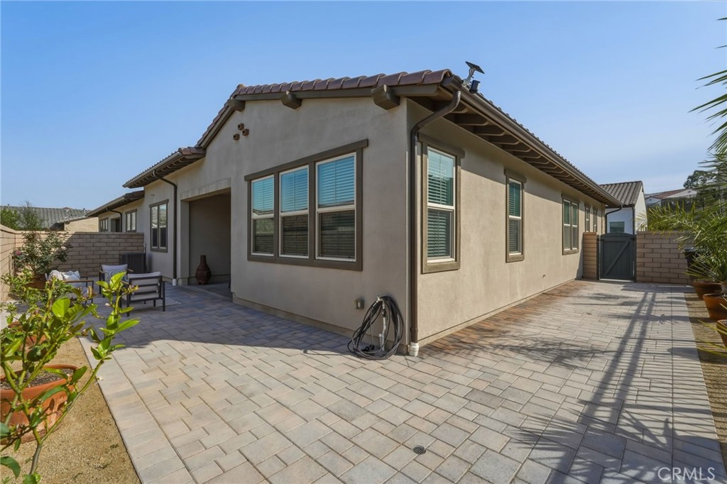 What truly sets this home apart is its rare lot placement. The side opens to a landscaped common area with guest parking, a feature not commonly found in the community. Additionally, the property offers a double-width entry patio and expanded rear walkway, providing more outdoor space and accessibility than most homes. The paver system, landscaping, and irrigation were custom-designed, creating a polished outdoor environment ideal for entertaining or quiet enjoyment.